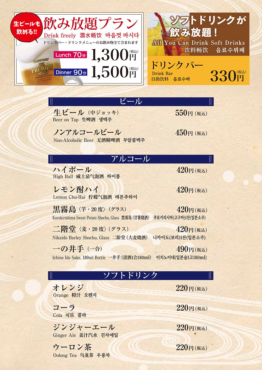 ●メニューの写真はイメージです。実際の商品・器などは多少異なります。